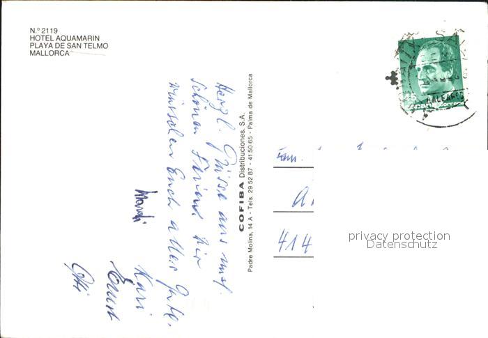 old postcard Mallorca Hotel Aquamarin postalisch gelaufen Erhaltung siehe scans [LiesaD40]