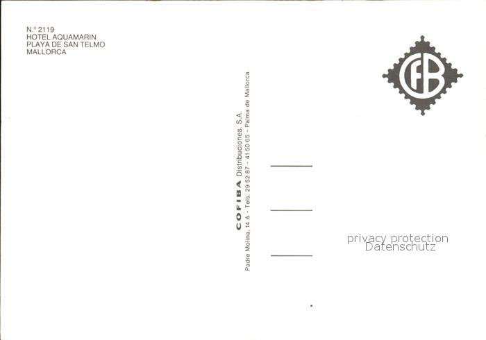 Mallorca Hotel Aquamarin Playa de San Telmo postalisch nicht gelaufen Erhaltung siehe scans