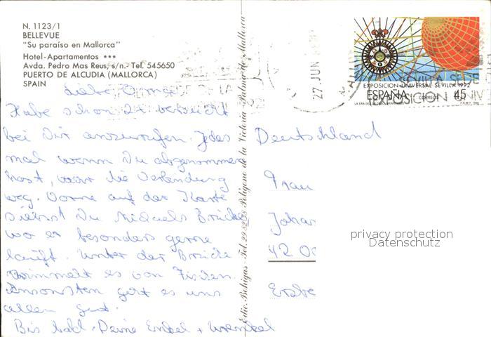Mallorca Hotel Bellevue Puerto del Alcudia postalisch nicht gelaufen Erhaltung siehe scans