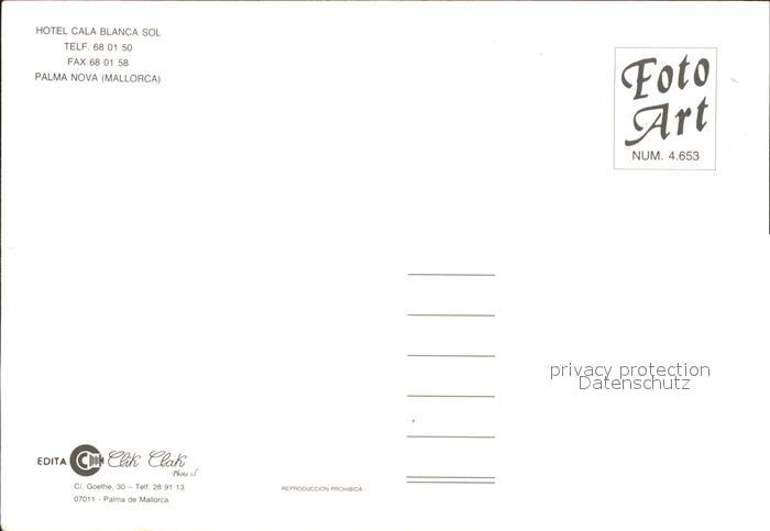 Mallorca Hotel Cala Blanca Sol Palma Nova postalisch nicht gelaufen Erhaltung siehe scans