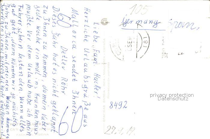 old postcard Mallorca Hotel Clumba Mar Picafort postalisch gelaufen Erhaltung siehe scans