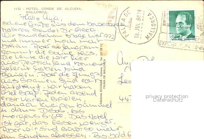 old postcard Mallorca Hotel Conde de Alcudia postalisch gelaufen Erhaltung siehe scans
