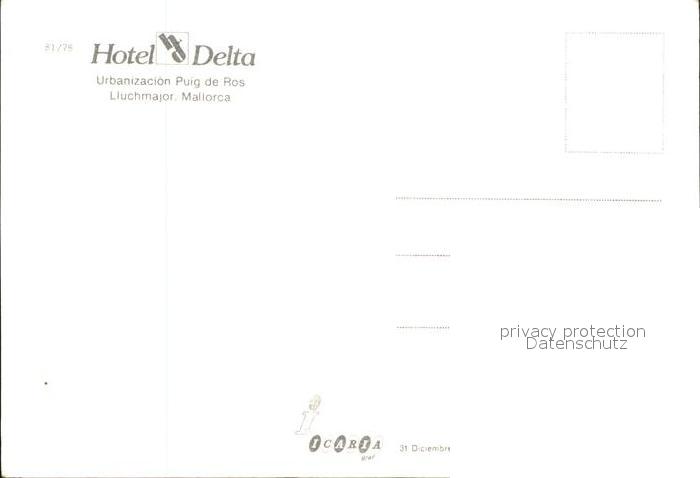 Mallorca Hotel Delta Urbanizacion Puig de Ros Lluchmajor postalisch nicht gelaufen Erhaltung siehe scans
