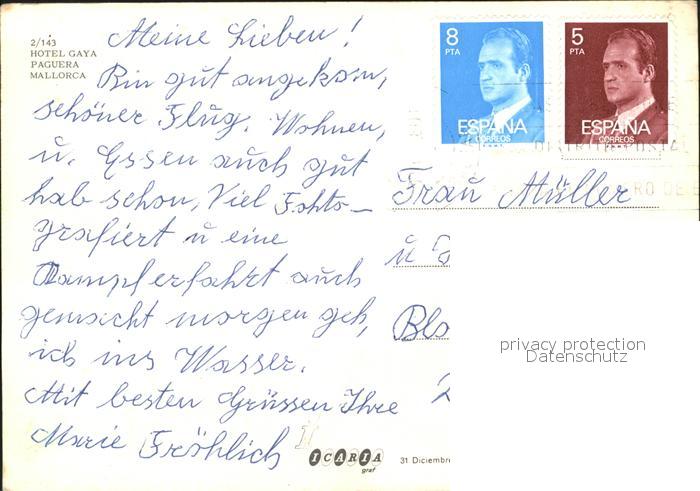 old postcard Mallorca Hotel Gaya Paguera postalisch gelaufen Erhaltung siehe scans
