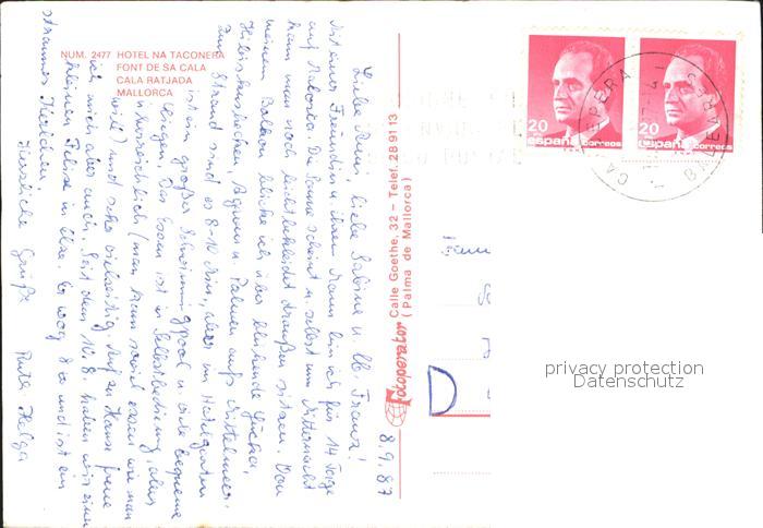 old postcard Mallorca Hotel na Taconera Font de Sa Cala postalisch gelaufen Erhaltung siehe scans