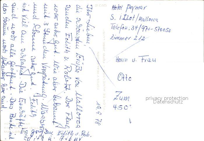 Mallorca Hotel Peymar postalisch nicht gelaufen Erhaltung siehe scans