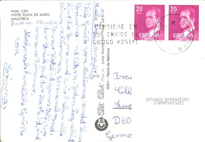 old postcard Mallorca Hotel Playa de Muro postalisch gelaufen Erhaltung siehe scans