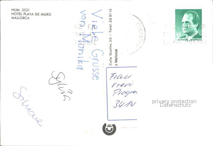 old postcard Mallorca Hotel Playa de Muro Fliegeraufnahme Swimmingpool postalisch gelaufen Erhaltung siehe scans