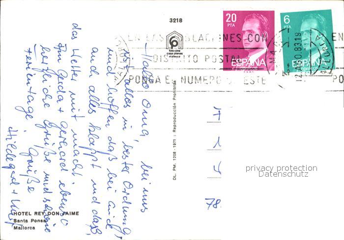old postcard Mallorca Hotel Rey Don Jaime postalisch gelaufen Erhaltung siehe scans [LiesaD40]