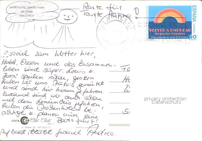 old postcard Mallorca Hotel Safari Park Sa Coma postalisch gelaufen Erhaltung siehe scans