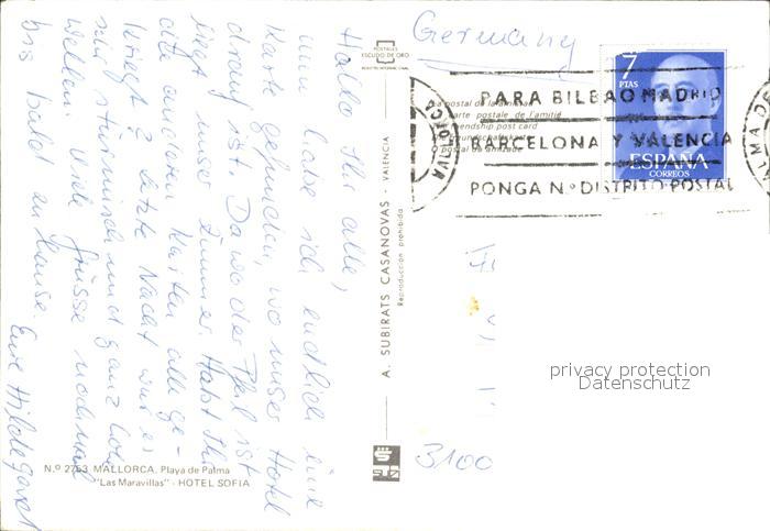 old postcard Mallorca Hotel Sofia postalisch gelaufen Erhaltung siehe scans
