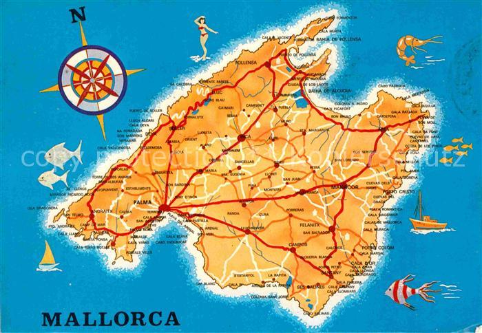 old postcard Mallorca Landkarte postalisch gelaufen Erhaltung siehe scans [LiesaD40]