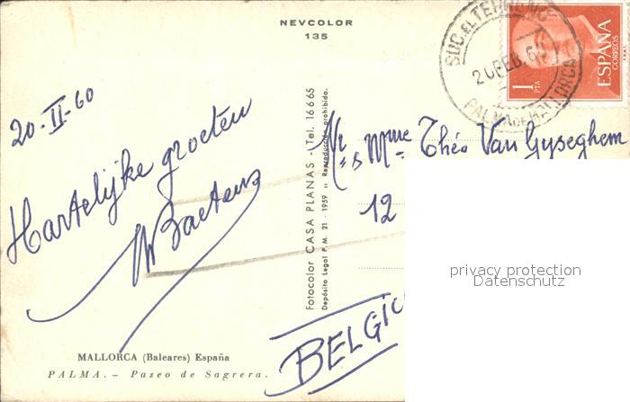 old postcard Mallorca Paseo de Sagrera postalisch gelaufen Erhaltung siehe scans