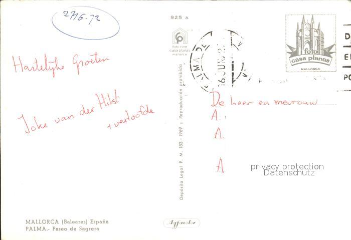 old postcard Mallorca Paseo de Sagreta postalisch gelaufen Erhaltung siehe scans