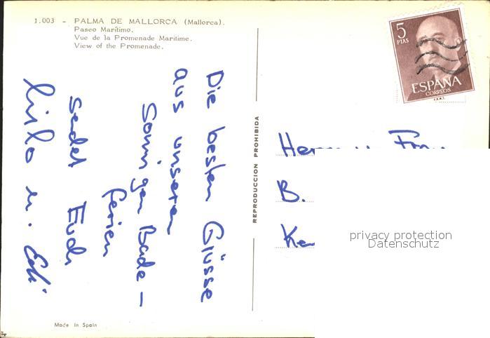 old postcard Mallorca Paseo Maritimo Strandpromenade postalisch gelaufen Erhaltung siehe scans