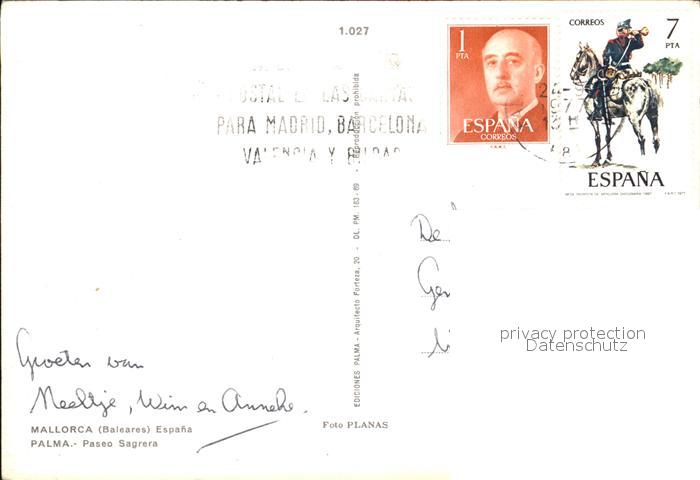 old postcard Mallorca Paseo Sagrera postalisch gelaufen Erhaltung siehe scans [AndreD76]