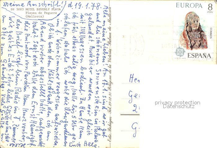 old postcard Mallorca Playas de Paguera Hotel Beverly Playa postalisch gelaufen Erhaltung siehe scans