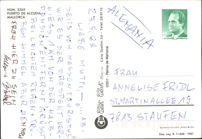 old postcard Mallorca Puerto de Alcudia postalisch gelaufen
