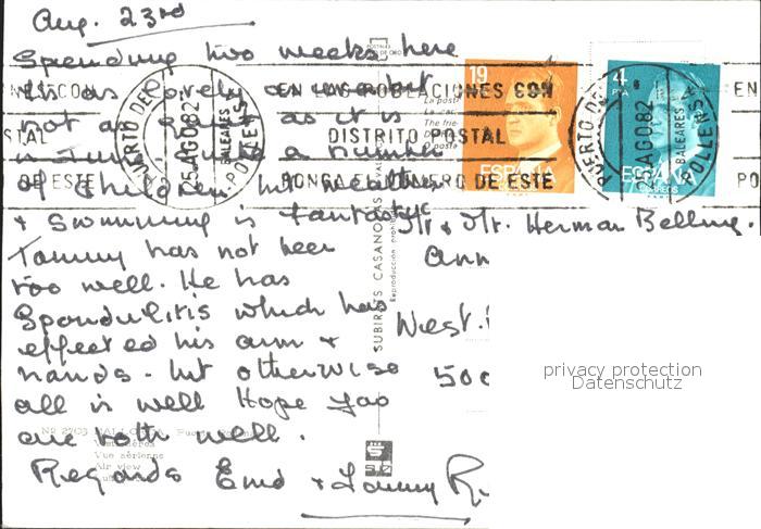 old postcard Mallorca Puerto Pollense Fliegeraufnahme postalisch gelaufen Erhaltung siehe scans