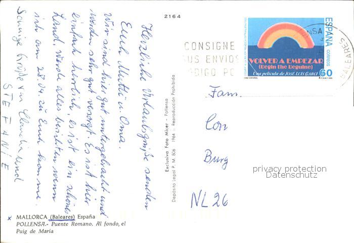 old postcard Mallorca Puig de Maria postalisch gelaufen Erhaltung siehe scans