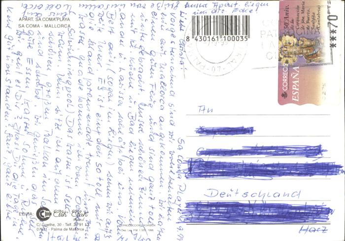 old postcard Mallorca Sa Coma Playa postalisch gelaufen