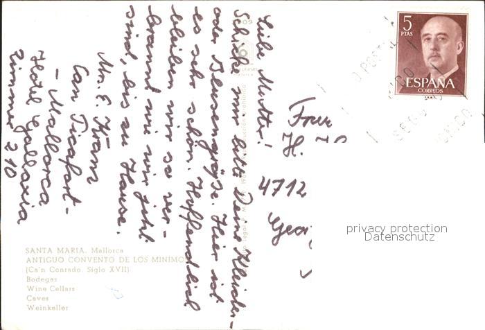 old postcard Mallorca Santa Maria Weinkeller Frauen in Tracht postalisch gelaufen Erhaltung siehe scans
