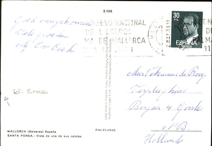 old postcard Mallorca Santa Posa postalisch gelaufen