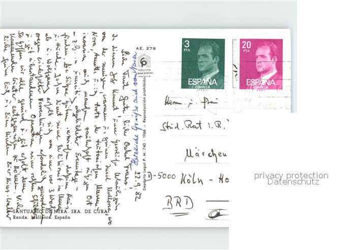 old postcard Mallorca Santuario De Ntra postalisch gelaufen Erhaltung siehe scans