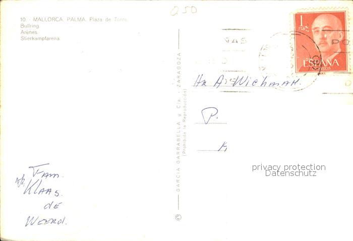 old postcard Mallorca Stierkampfarena postalisch gelaufen Erhaltung siehe scans