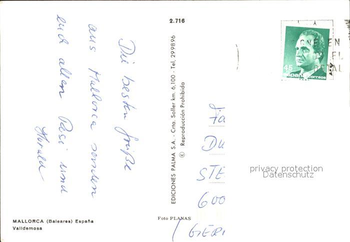 old postcard Mallorca Valldemosa Stadtansichten postalisch gelaufen Erhaltung siehe scans