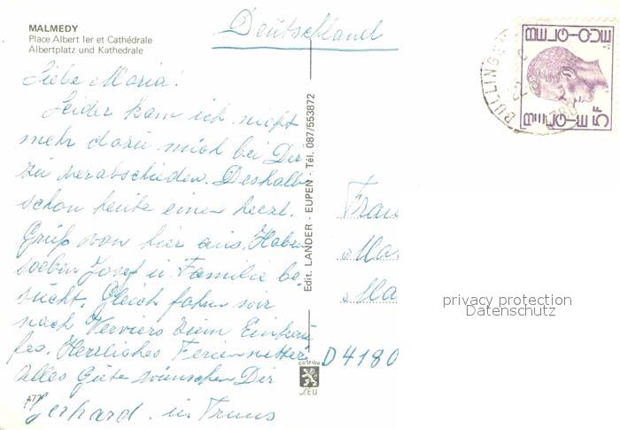 72757663 carte postale Malmedy Wallonie Albertplatz mit Kathedrale postalisch gelaufen Erhaltung siehe scans [WerneD78] KatCode: 11070063008069