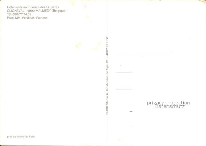 72270419 Malmedy Wallonie Hotel Restaurant Cligneval postalisch nicht gelaufen Erhaltung siehe scans KatCode: 11070063008069