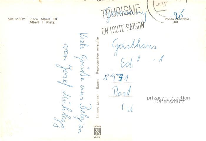 73773347 carte postale Malmedy Wallonie Place Albert Ier postalisch gelaufen Erhaltung siehe scans [FriedD77] KatCode: 11070063008069