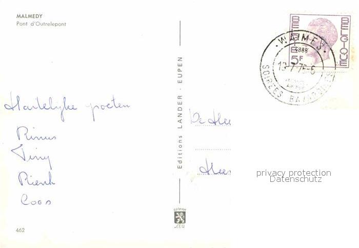 72913464 carte postale Malmedy Wallonie Pont d Outrelepont postalisch gelaufen Erhaltung siehe scans [FriedD77] KatCode: 11070063008069