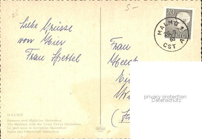 old postcard Malmoe Harbour with Train Ferry Malmoehus postalisch gelaufen Erhaltung siehe scans