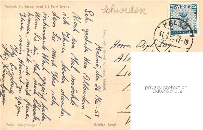 old postcard Malmoe Stortorget med St Petri kyrka postalisch gelaufen Erhaltung siehe scans [WerneD78]