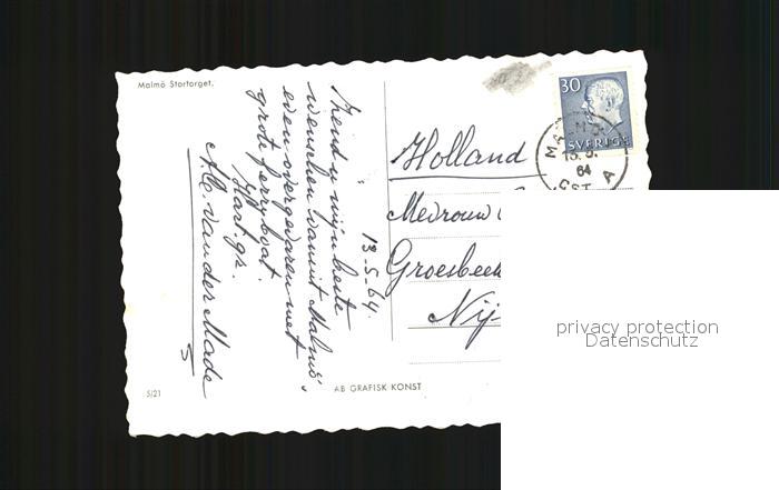 old postcard Malmoe Stortorget Platz Denkmal postalisch gelaufen Erhaltung siehe scans