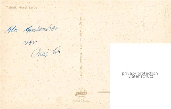 73851739 Malmoe Sweden Hotel Savoy postalisch nicht gelaufen Erhaltung siehe scans [FriedD77] Frie Katcode 11460