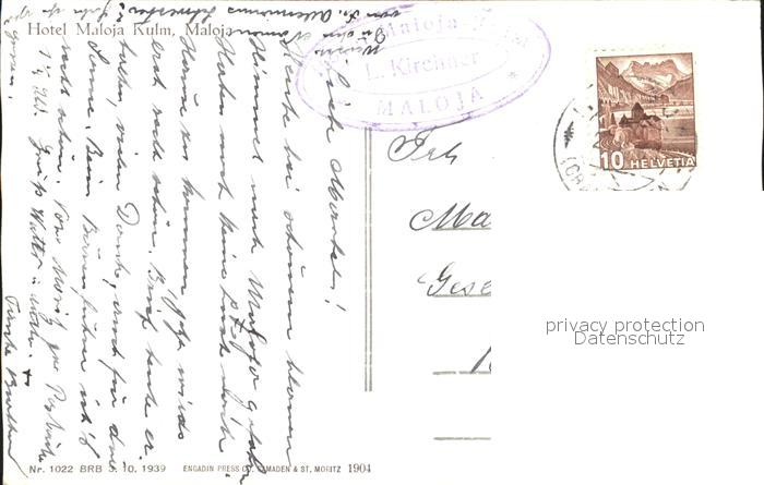 12029774 alte Postkarte Maloja GR Hotel Maloja Kulm postalisch gelaufen Erhaltung siehe scans KatCode: 11470100335244