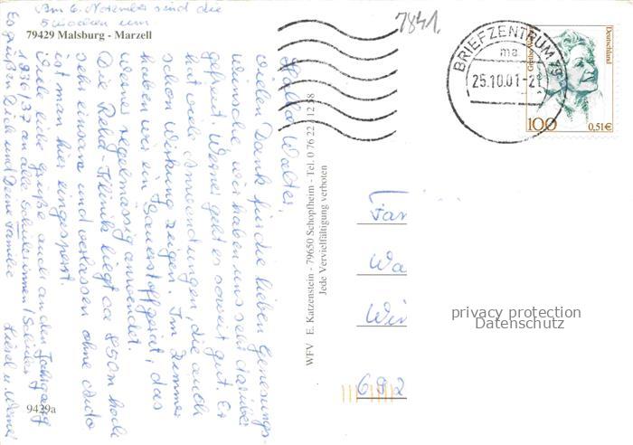 Malsburg-Marzell BW Fliegeraufnahmen Panorama postalisch gelaufen Erhaltung siehe scans [WerneD78] alte Postkarte Wern Katcode 11110008336104