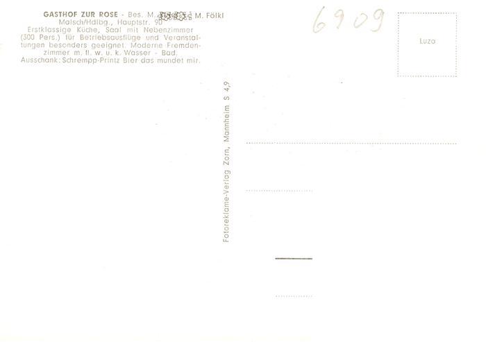 73870301 Malsch Wiesloch Heidelberg Gasthof zur Rose Gastraum postalisch nicht gelaufen Erhaltung siehe scans [FriedD77] KatCode: 11110008226046