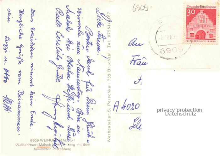 74048858 alte Postkarte Malsch Wiesloch Heidelberg Wallfahrtskirche Letzenberg postalisch gelaufen Erhaltung siehe scans [WerneD78] KatCode: 11110008226046