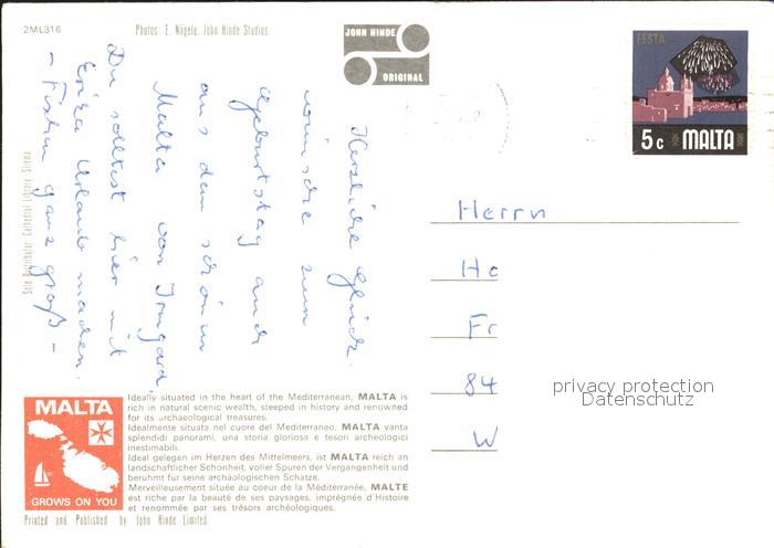 old postcard Malta Blaue Grotte Kirche postalisch gelaufen Erhaltung siehe scans