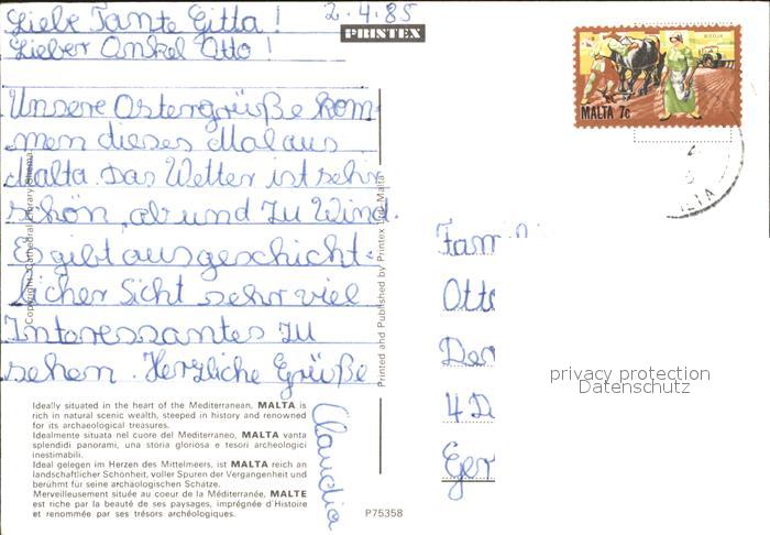 old postcard Malta Blaue Grotte Ortansichten postalisch gelaufen