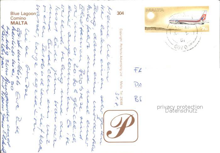 old postcard Malta Blue Lagoon Comino postalisch gelaufen Erhaltung siehe scans