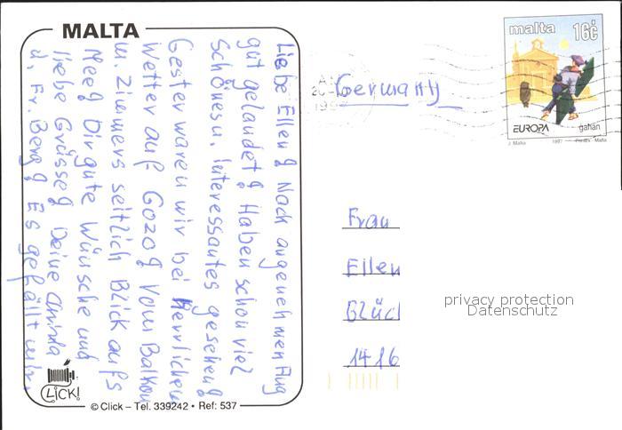 old postcard Malta Haus Boote Yacht postalisch gelaufen Erhaltung siehe scans