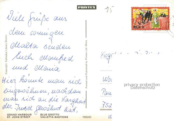 74005973 old postcard Malta Insel Grand Harbour St John Street Blue Grotto Valletta Bastions postalisch gelaufen Erhaltung siehe scans [WerneD78] KatCode: 11310