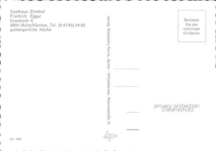 72446411 Malta Kaernten Gasthaus Zirmhof Speiseraum Aussenansicht mit Garten postalisch nicht gelaufen Erhaltung siehe scans KatCode: 11390212020619