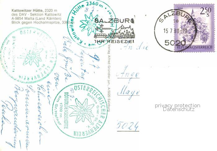 72654228 alte Postkarte Malta Kaernten Kattowitzer Huette mit Hochalmspitze postalisch gelaufen Erhaltung siehe scans [WerneD78] KatCode: 11390212020619