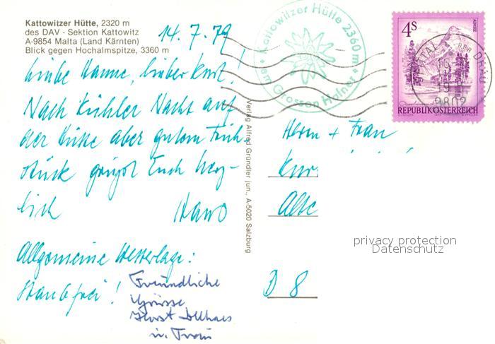 73054536 alte Postkarte Malta Kaernten Kattowitzer Huette postalisch gelaufen Erhaltung siehe scans [KathaD81] KatCode: 11390212020619